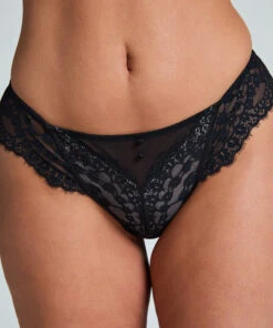 Slip brésilien entièrement décoré de dentelle, ce qui le rend encore plus sexy ! Il est également décoré d’un petit nœud charmant au milieu. À combiner avec le soutien-gorge assorti pour avoir la parure complète.
